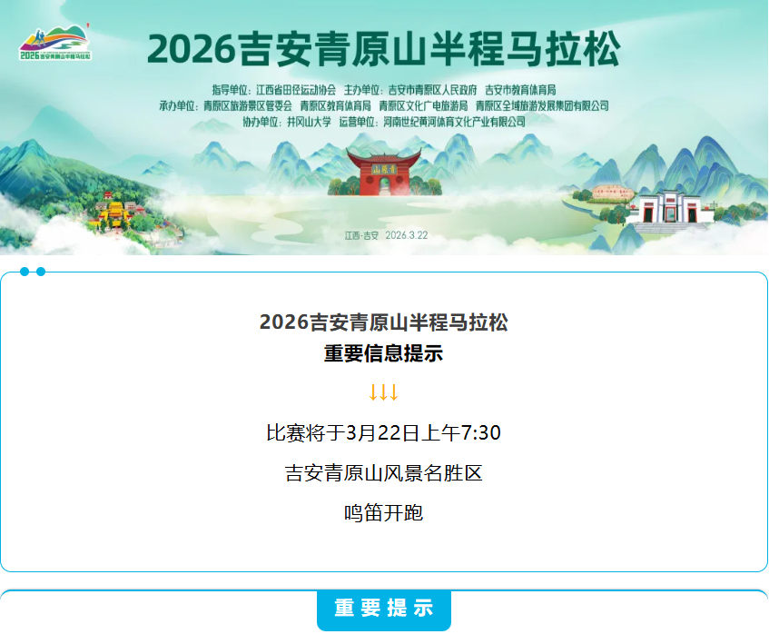 2026吉安青原山半程马拉松已经圆满落幕成绩查询照片下载已经准备就绪快来查看如何查询吧!一日青原一世情缘跑步爱上青原山!招商/合作/咨询13691063616黄河体育官方微信公众号黄河体育官方网址http://www.huanghespor..